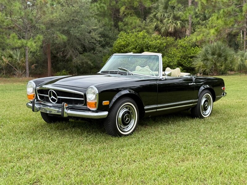 1970 Mercedes Benz 280SL Pagoda 6 Speed Manual Transmission with Air Conditioner Fully Restored by Unique Cars of Palm Beach in 2021, This 280SL is a very original example, Matching Numbers, original color Black, Restoration finished 4 years ago by Unique Cars of Palm Beach only 1,500 miles since restoration, Absolutely Beautiful, Spot welds and Notches are present, excellent Trunk and undercarriage, Perfect good Chrome, Matching Hard Top, Parchment Soft Top, Color Combination of Black, Color Code 040 G, with Parchment Leather interior, Data Card keys Books, if you are looking for a restored original 280SL this is the right one to have, $234,900 Possibility of Finance through a major lender, Please call 561-429-5459 or Cell 305-775-2234. Unique cars of Palm Beach.