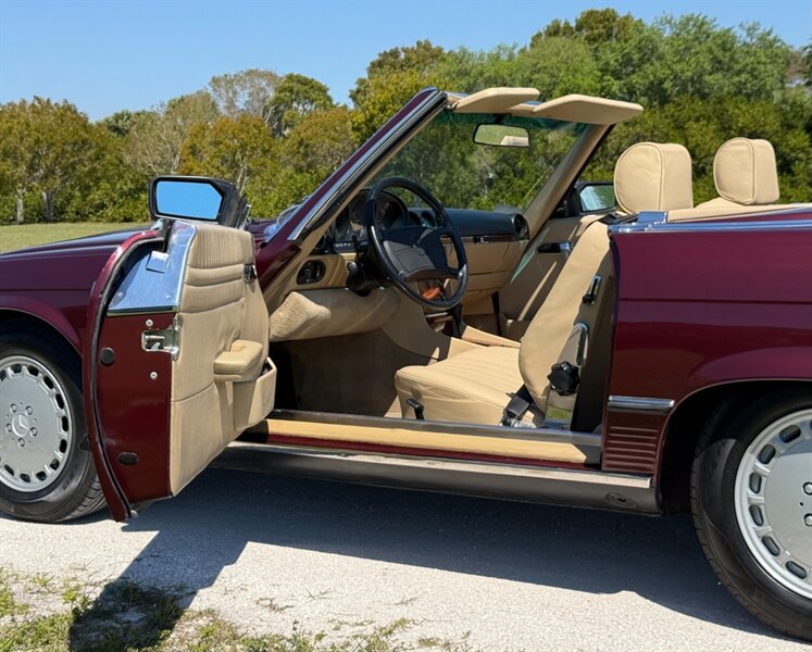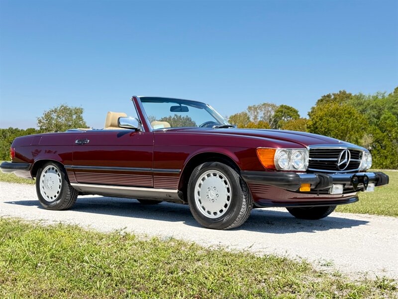 1988 Mercedes Benz 560SL Low Miles, clean Carfax, Stunning, desirable color combination Cabernet Red with New Cream Leather interior, New console woods, and New Black Soft Top, this car has just being serviced , Paint refresh, New Correct size Pirelli, Tires oil change and filter, Expansion tank and cap, A/C compressor, receiver dryer, High and low Pressure switches, A/C Relay, Fresh Brake Fluid Original Becker Radio with Bluetooth, runs and drives like new, cold A/C just serviced, Matching color hard top, 560SL's are at the top of one of the longest single model production by Mercedes Benz the R107, which lasted 18 years due to its success, these are classic cars with modern amenities like cruise control, air bag, power windows, modern air conditioner system and much more, this is why these classics are going up in value and desirability by collectors and enthusiasts, especially the good ones , please contact Unique Cars of Palm Beach for your next Mercedes SL, we have several color combinations all low miles and in excellent conditions, we can finance trough a major lender, $39,900 Please Call 561-429-5459 or Cell 305-775-223