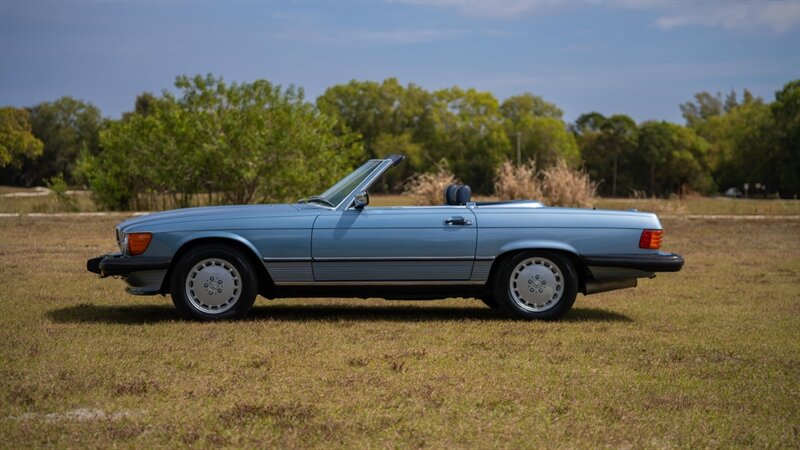 1989 last year of production Mercedes Benz 560SL, clean Carfax, Stunning, rare and desirable color combination Diamond Blue with Navy Blue Leather, New Dark Blue Soft top, Hardtop in the same body color, this car has just being serviced, oil changed and filter, New Water Pump, Thermostat, fluids flushed and replaced, New Fan Clutch, shifter bushings, New correct size tires with refurbished wheels, Original Becker radio just Serviced by Becker USA with Bluetooth, keys books and tools, runs and drives like new, cold A/C just serviced, Matching color hard top and new soft top, 560SL's are at the top of one of the longest single model production by Mercedes Benz the R107, which lasted 18 years due to its success, these are classic cars with modern amenities like cruise control, air bag, power windows, modern air conditioner system and much more, this is why these classics are going up in value and desirability by collectors and enthusiasts, especially the good ones , please contact Unique Cars of Palm Beach for your next Mercedes SL, we have several color combinations all low miles and in excellent conditions, we can finance trough a major lender, $53,900 Please Call 561-429-5459 or Cell 305-775-2234